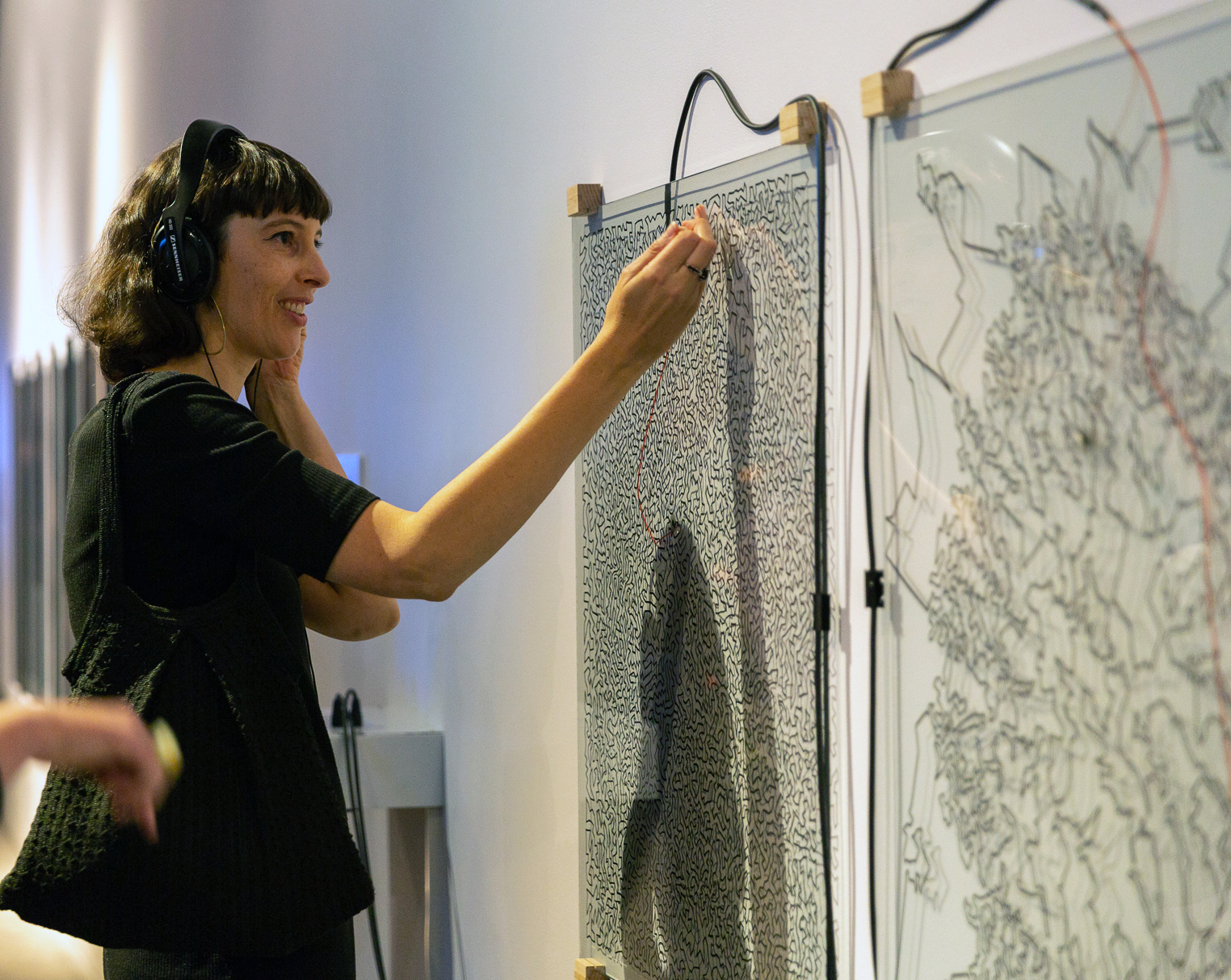 Joyce Hinterding is an Australian artist based in The Blue Mountains, on the Land of the Dharug and Gundungurra people. Her practice is internationally renowned for exploring the broader concept of Energy through extensive fieldwork and research into electromagnetic phenomena with large sculptural receiving antennae and experimental graphite drawings. She often collaborates with artist David Haines to produce large-scale, environmentally based artworks that incorporate immersive, real-time interactive 3d environments. She has exhibited extensively nationally and internationally, including the 23rd Biennale of Sydney Rīvus 2022 and the 2002 and 1992 Sydney Biennales. In 2015, her collaborative work with David Haines was featured by the MCA in the survey exhibition Energies Haines & Hinterding, and in 2016, they produced an extensive monograph exhibition titled Résonances Magnétiques – La Panacée, Montpellier, France. In 2019, Joyce was awarded the Australia Council Emerging & Experimental Arts Award. Sumer Gallery in Auckland, New Zealand, and Syrup Contemporary in Sydney represent Joyce.