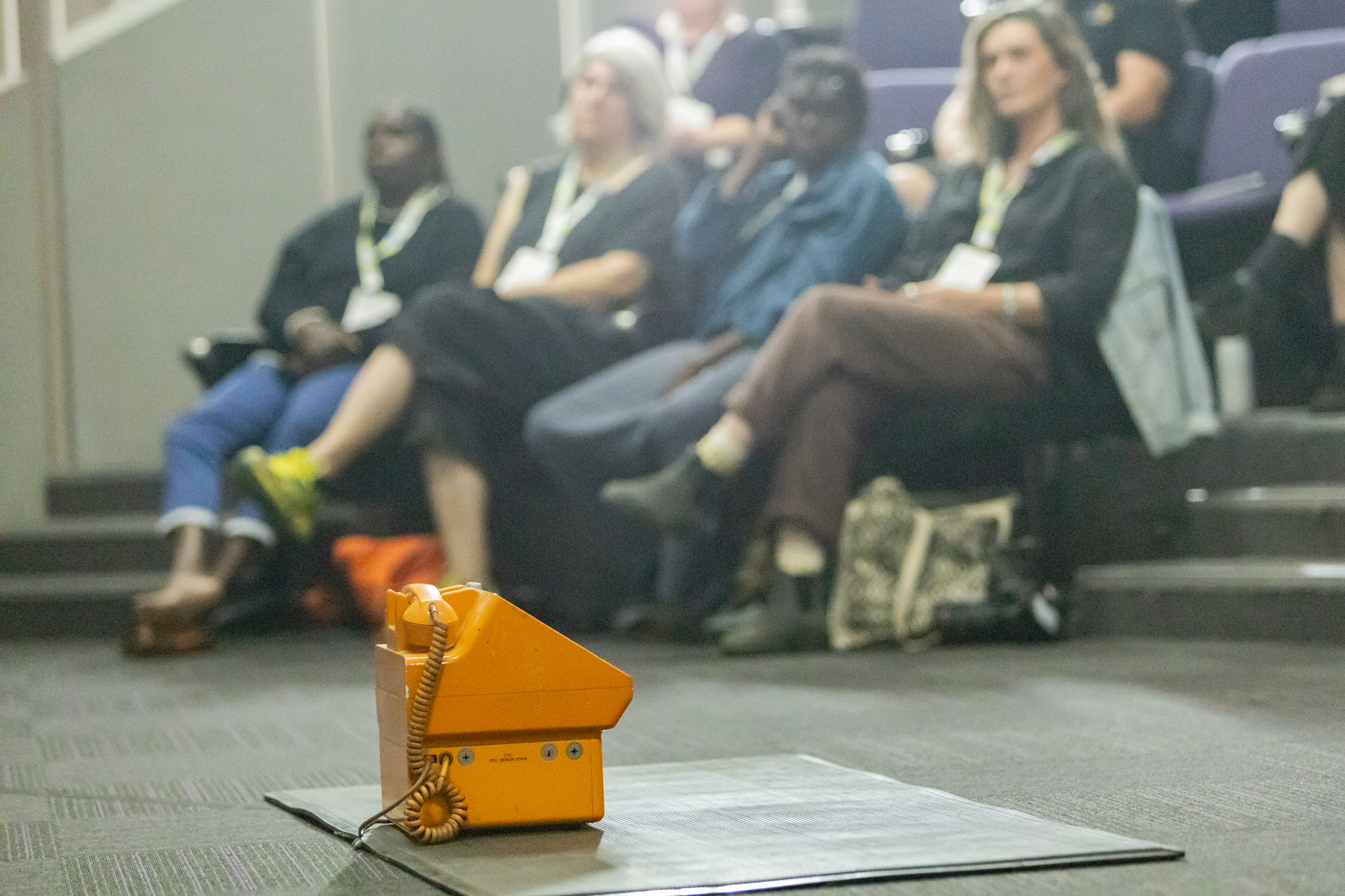 We installed the Gold.Phone at UniSC Art Gallery as part of the Reciprocity exhibition and program. Anyone could leave a message, either in person or remotely. During the gathering A Curious Tractor shared the importance of leaving a voice message and demonstrated how the messages left on The Gold.Phone have created a repository of thematics from the collective voice.