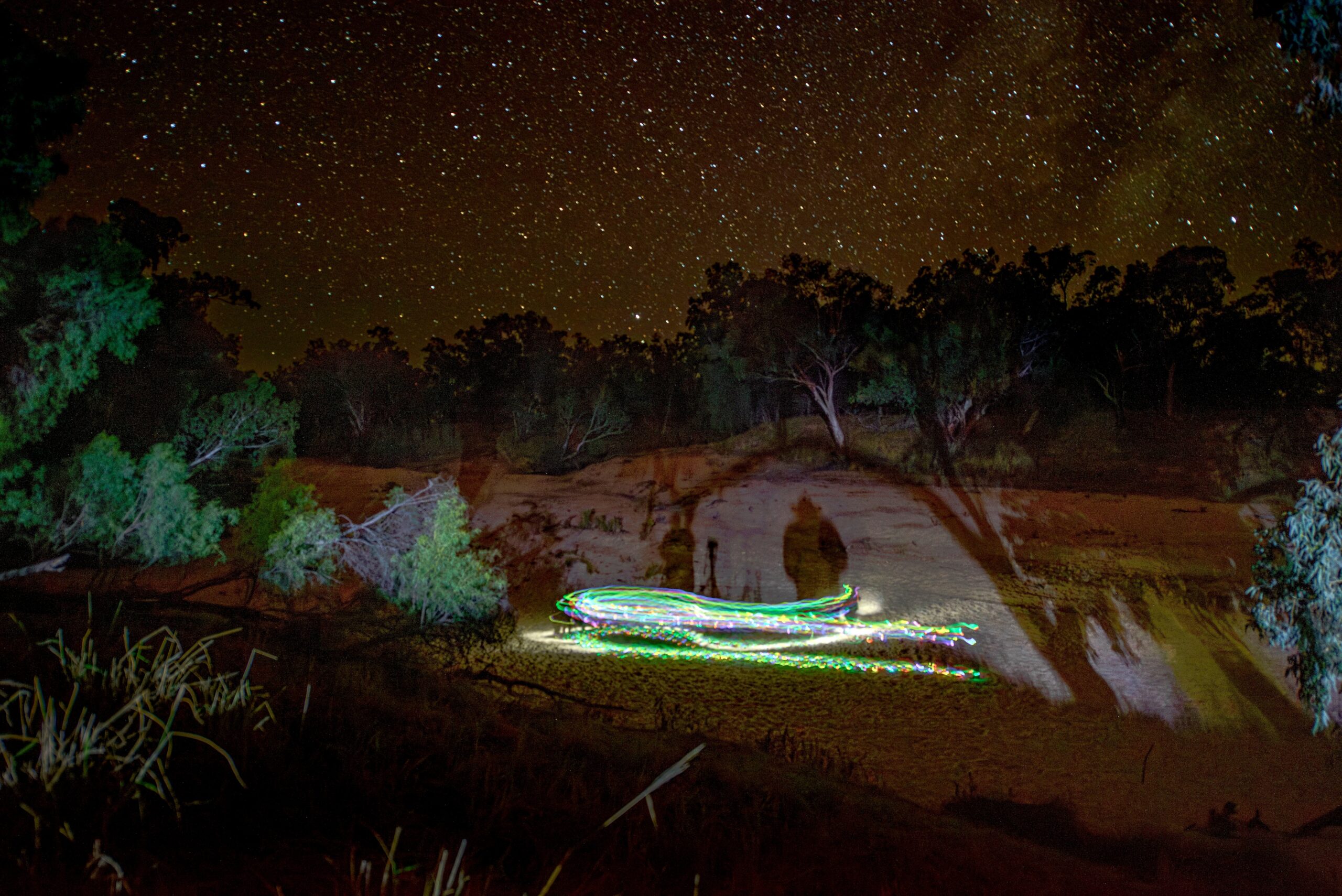 Image Greg Harm. Collaborative project on the Maranoa riverbed directed by Russell Craig and Vicki Saunders.